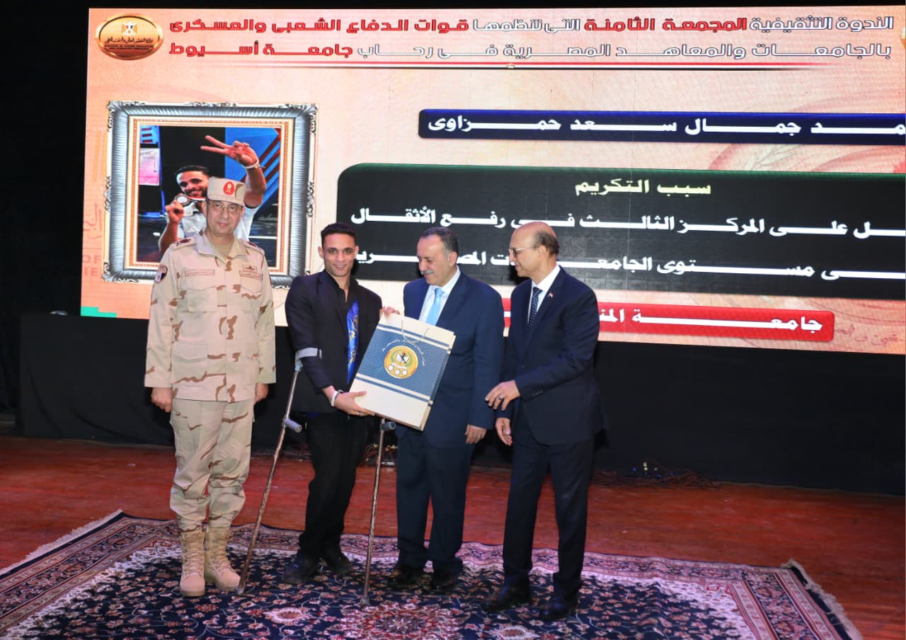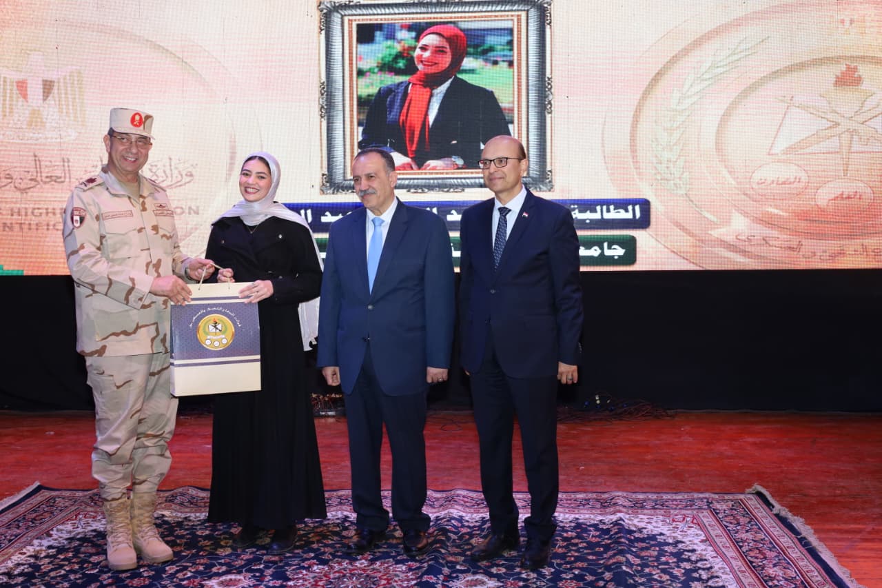 وفي ختام الندوة، جرى تكريم الطالب محمد حسام الدين أحمد، الطالب بكلية العلوم جامعة المنيا، مندوب مصر في مؤتمر اليونسكو الرابع عشر ممثلًا عن الشباب بدولة أوزبكستان، والطالب محمد جمال، من ذوي الهمم، والحاصل على الميدالية الذهبية في ملتقى الإسكندرية لذوي الإعاقة، إلى جانب تبادل الدروع بين الجهات المشاركة، وتكريم عدد من أسر الشهداء وذوي الهمم، تقديرًا لعطائهم ودورهم الوطني.