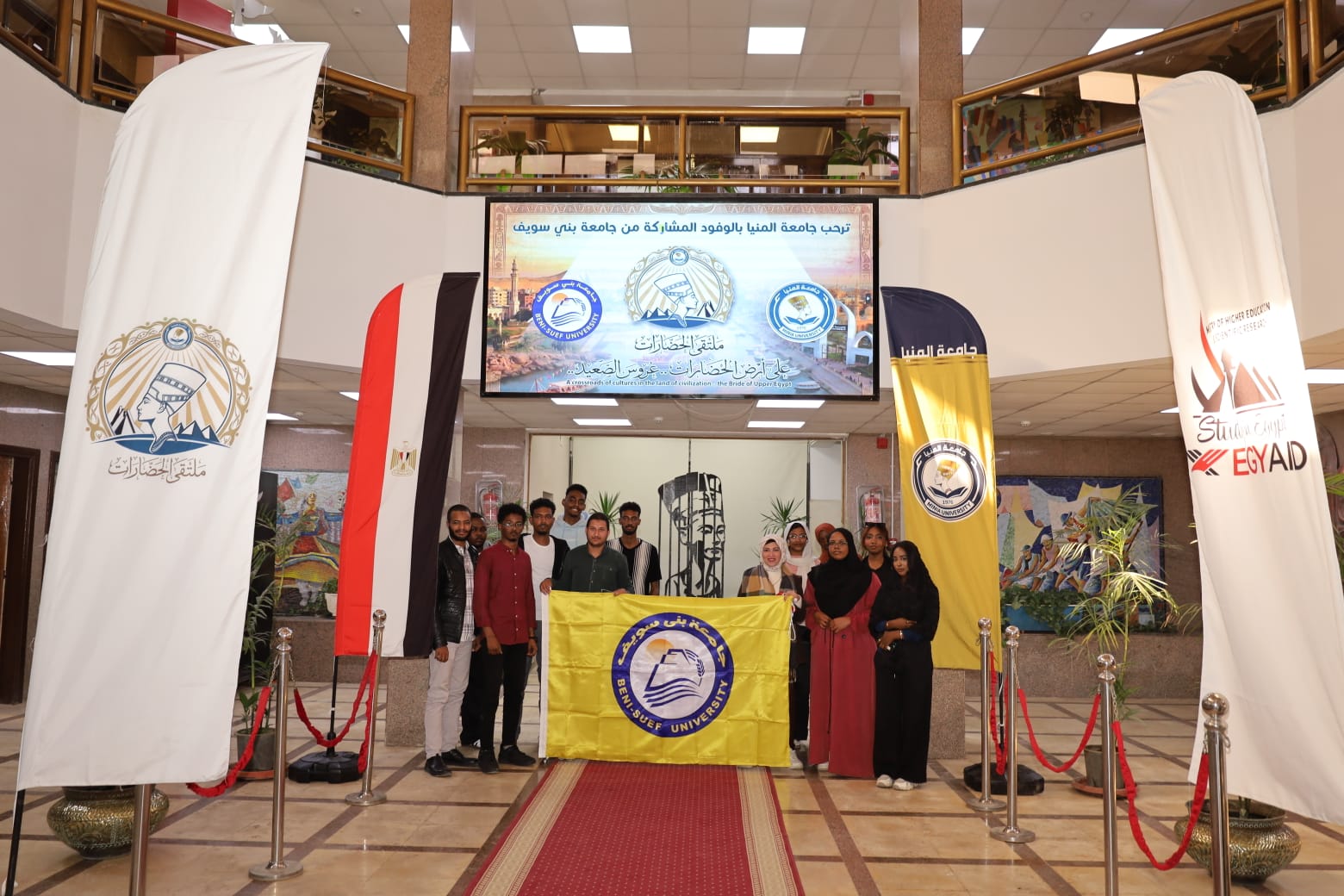 جامعة المنيا تستقبل وفود جامعات بني سويف والعاصمة وأسيوط من الطلاب الوافدين المشاركين بملتقى الحضارات من 13 جنسية من دول العالم دعمًا للاقتصاد القومي وتعزيزًا للترويج السياحي والتعليمي