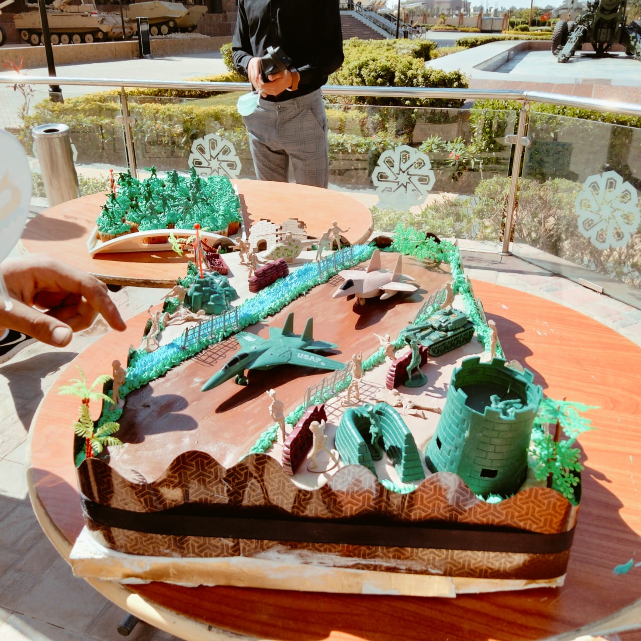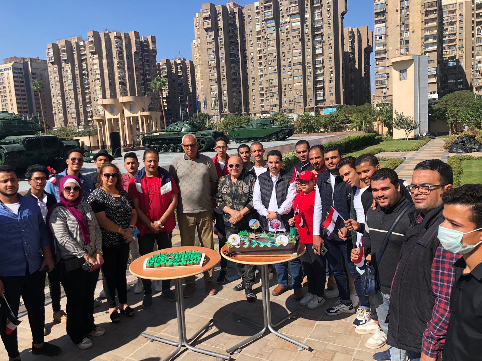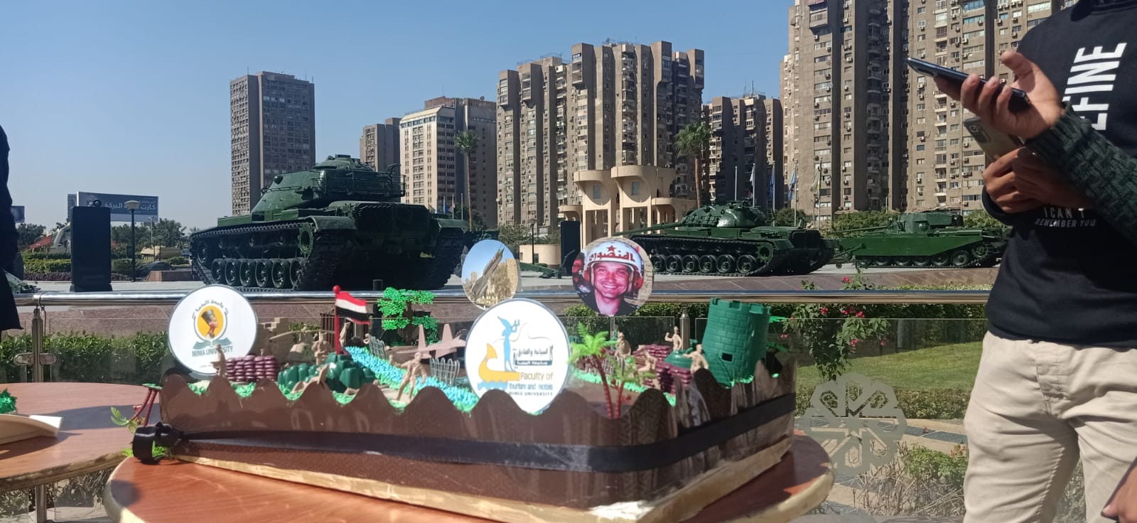 كان في استقبال وفد جامعة المنيا اللواء طيار أركان حرب أحمد كمال المنصور أحد أبطال حرب أكتوبر المجيدة، واللواء عبد الله شاهين مدير بانوراما أكتوبر، حيث تم إهدائهم تورتة النصر التي تم إعدادها وتصميمها بكلية السياحة والفنادق.