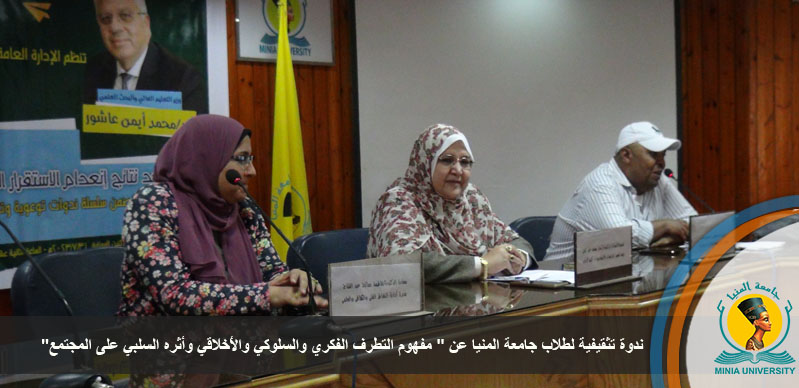 ندوة تثقيفية لطلاب جامعة المنيا عن " مفهوم التطرف الفكري والسلوكي والأخلاقي وأثره السلبي على المجتمع"
