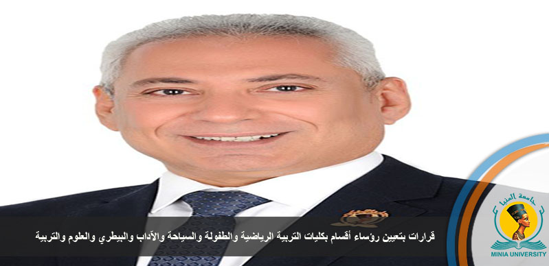 أصدر الدكتور عصام فرحات رئيس جامعة المنيا، قرارات بتعيين رؤساء مجالس الأقسام بكليات التربية الرياضية، والتربية للطفولة المبكرة، والسياحة والفنادق، والطب البيطري، والعلوم، والتربية، والآداب، وجاءت القرارات بتعيين كلاً من الآتي أسمائهم رؤساء الأقسام بكلية التربية الرياضية وهم: