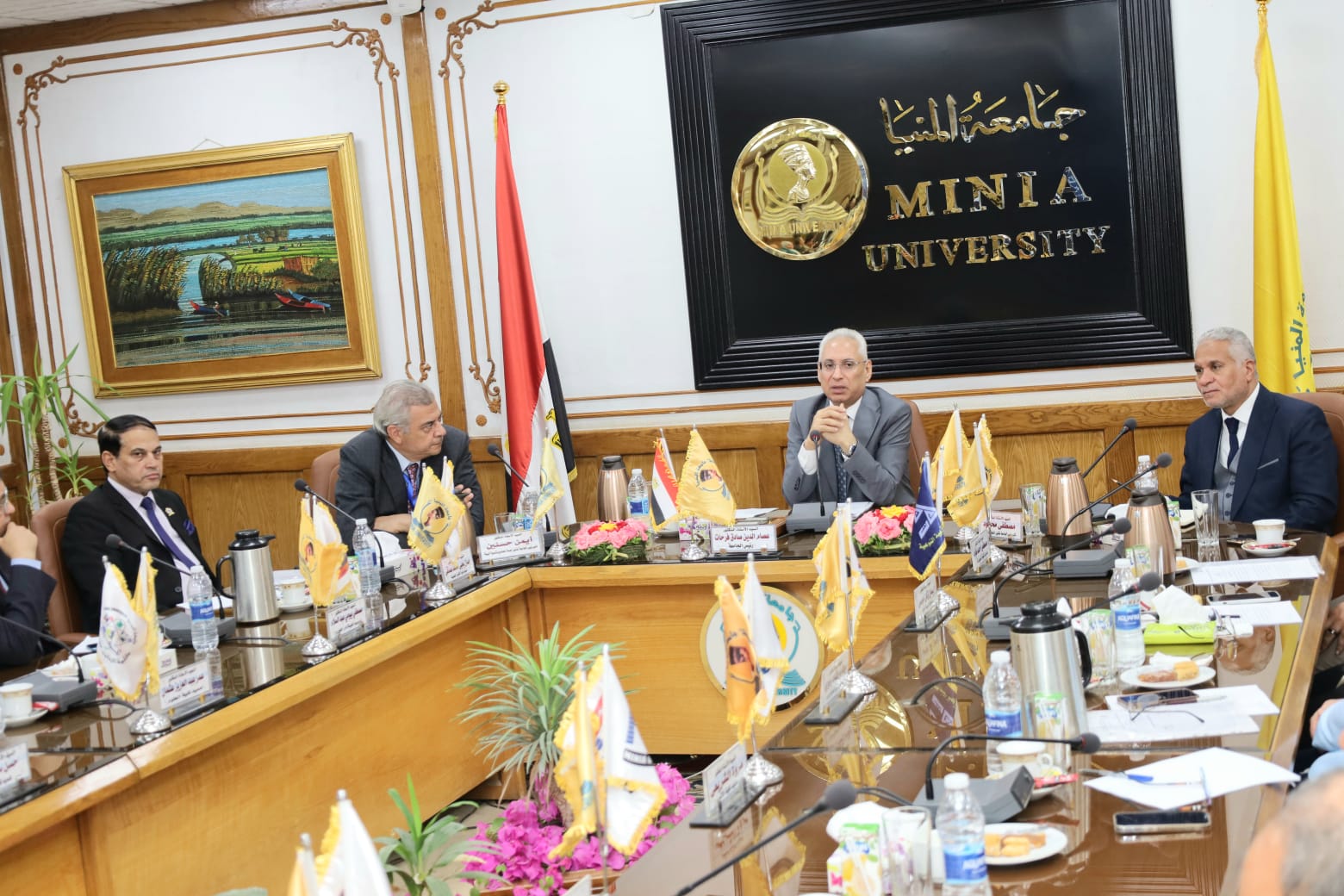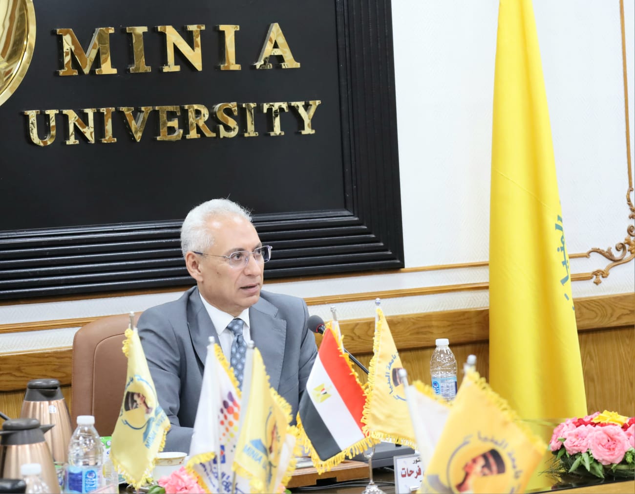 عقد مجلس جامعة المنيا اجتماعه الدوري برئاسة الدكتور عصام فرحات، رئيس الجامعة، وبحضور الدكتور أيمن حسانين نائب رئيس الجامعة لشئون خدمة المجتمع وتنمية البيئة، والدكتور مصطفى محمود نائب رئيس الجامعة لشئون التعليم والطلاب، وعمداء الكليات، ومدير مركز ضمان الجودة والاعتماد، والمدير التنفيذي للمعلومات، والمستشار القانوني، وأمين عام الجامعة؛ وذلك لمناقشة عدد من الملفات الاستراتيجية والقرارات الداعمة لمسار الجامعة نحو التميز الأكاديمي والريادة المؤسسية.