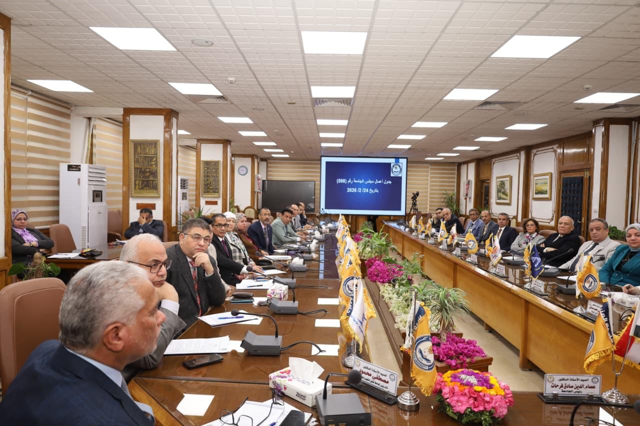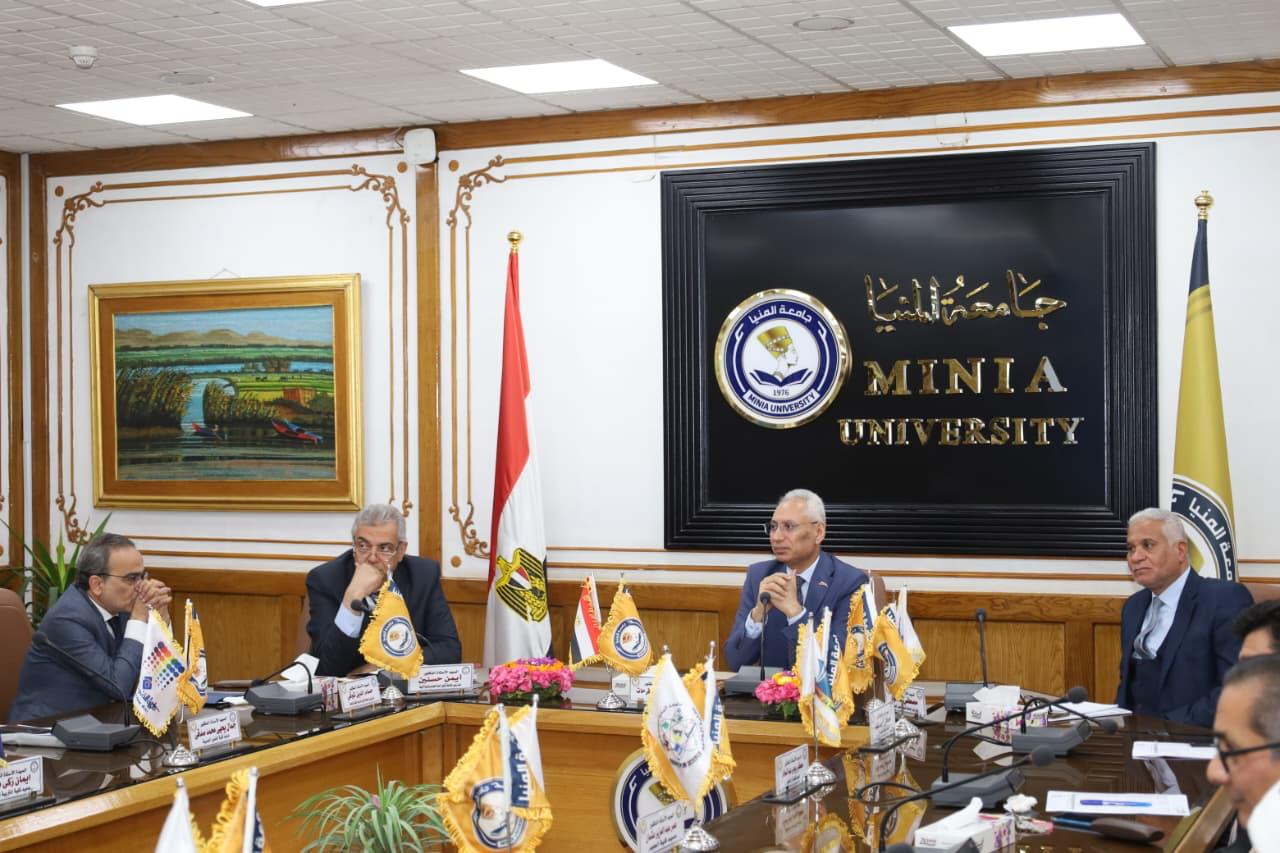 مجلس جامعة المنيا يهنئ محافظ المنيا بتجديد ثقة القيادة السياسية ويثمن التعاون والتكامل مع المحافظة.. ويُقر مواعيد تنظيمية ثابتة لمجالسها.. واستعدادات تاريخية لبدء زراعة الكبد والكلى في اليوبيل الذهبي