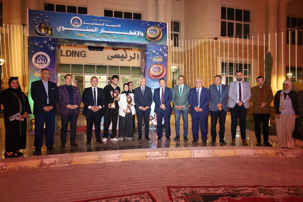 في إطار تعزيز التواصل المباشر بين إدارة الجامعة وطلابها، شارك الدكتور عصام فرحات رئيس جامعة المنيا، والقائم بأعمال رئيس جامعة المنيا الأهلية، أعضاء مجلس أمناء الجامعة: الدكتور محمد جلال، والدكتور أحمد شوقي ، والدكتور احمد السيد، طلاب الجامعة الأهلية حفل الإفطار الرمضاني السنوي الذي نظمته الإدارة العامة لرعاية الطلاب، بحضور الدكتور أبو هشيمة مصطفى نائب رئيس الجامعة للشئون الأكاديمية، وعمداء الكليات ومديري ومرشدي البرامج، وبمشاركة الطلاب أوائل الفرق الدراسية من مختلف البرامج والمتميزين في الأنشطة الطلابية.