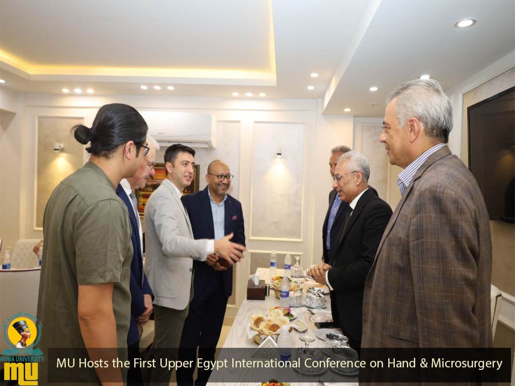 Prof. Dr. Essam Farahat, Minia University President, attended the welcome ceremony hosted by the Hand & Microsurgery Unit of Faculty of Medicine for guests of the First Upper Egypt International Conference on Hand & Microsurgery. This event includes leaders and pioneers from USA, Canada, Turkey, and Malaysia along with distinguished professors from various Egyptian universities. The conference holds from 3 to5 September 2025.