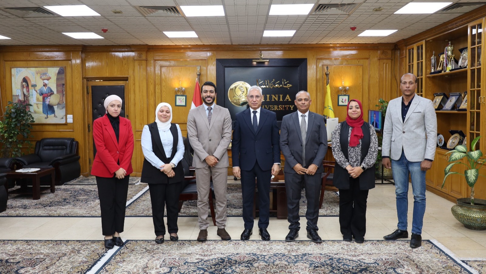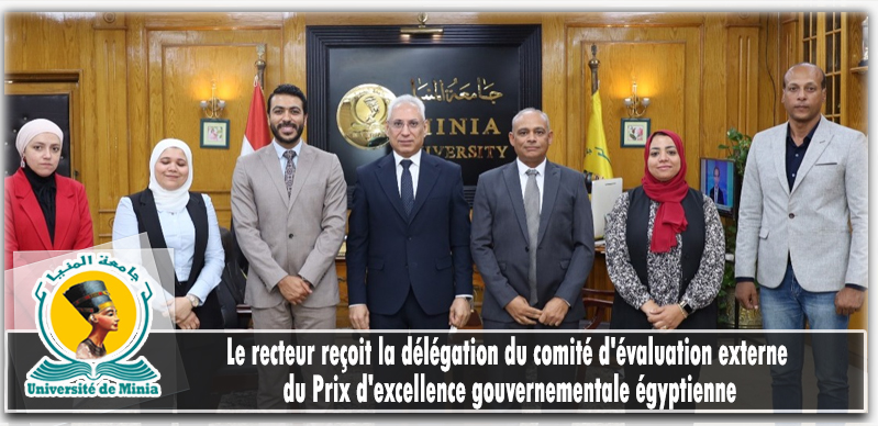 Le Prof. Dr. Essam Farhat, recteur de l'Université de Minia, a reçu une délégation du comité d'évaluation externe de l'équipe du Prix Égyptien d'Excellence Gouvernementale du ministère de la Planification et du Développement Économique.