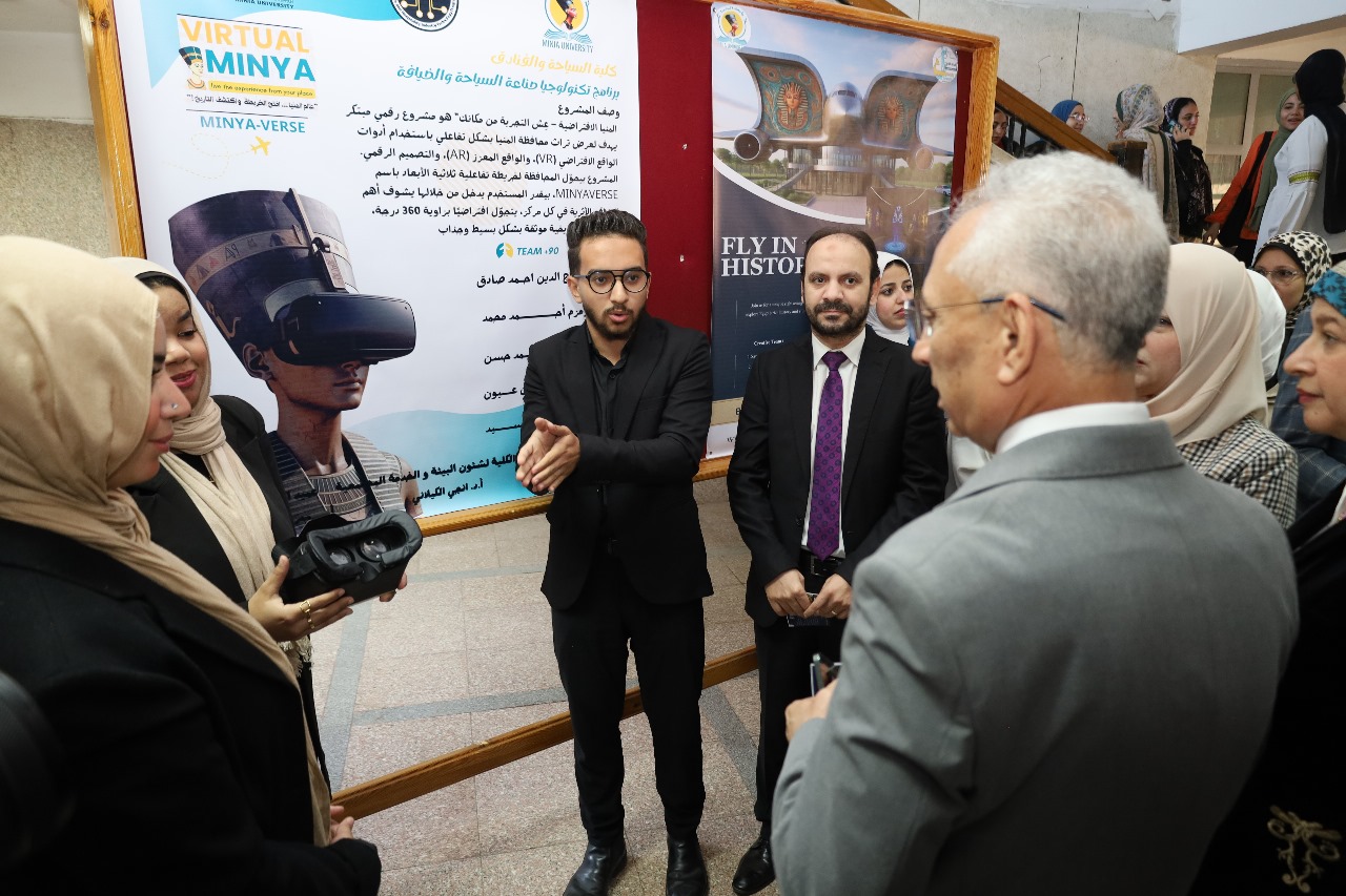 Le Prof. Dr./ Essam Farhat, recteur de l'Université de Minia, a inauguré le cinquième forum de l'emploi de la Faculté du Tourisme et de l'Hôtellerie. Cela s’inscrit en présence du Dr. Samar Mostafa, doyen de la faculté du Tourisme et de l'Hôtellerie, du Dr. Iman Al-Cherif, doyen de la Faculté d'Éducation spécifique et directrice du Centre national d'innovation et d'entrepreneuriat, du Dr. Hamed Gad, doyen de la Faculté de Médecine Dentaire, du Dr. Ahmed Chawki Zahran, directeur du Centre d'assurance qualité et d'accréditation de l'université, des vice-doyens de la faculté, des membres du corps professoral, du personnel administratif, des étudiants, et avec une large participation des plus grands hôtels, des chaînes de restaurants internationales, des entreprises de tourisme et de publicité.