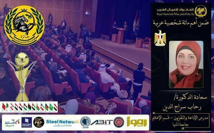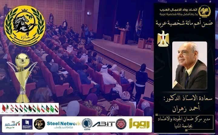 كرم اتحاد رواد الأعمال العرب برئاسة المهندس أحمد إبراهيم، الدكتور أحمد شوقي زهران، أستاذ الميكروبيولوجي بكلية الزراعة ومدير مركز ضمان الجودة والإعتماد بجامعة المنيا، والدكتورة رحاب سراج المدرس بشعبة الإذاعة والتليفزيون بكلية الآداب قسم الإعلام بالجامعة، ضمن أهم 100 شخصية عربية في تصنيف إتحاد رواد الأعمال العرب لها أثر ملموس في إفادة المجتمعات العربية، لما قدمه وفد الجامعة خلال مؤتمر ريادة الأعمال والتخطيط الإستراتيجي بالإسكندرية، أواخر العام الماضي وبحضور الدكتور جمال الدين علي أبو المجد رئيس الجامعة، من عرض إبتكارات ومقترحات للطلاب المشاركين بالمؤتمر تهدف للربح وتحقيق المنفعة للمجتمع، وهو ما نال إستحسان لجنة التحكيم بالمؤتمر، ورحبت بعض الوفود العربية بتبني مجموعة من الأفكار الطلابية.