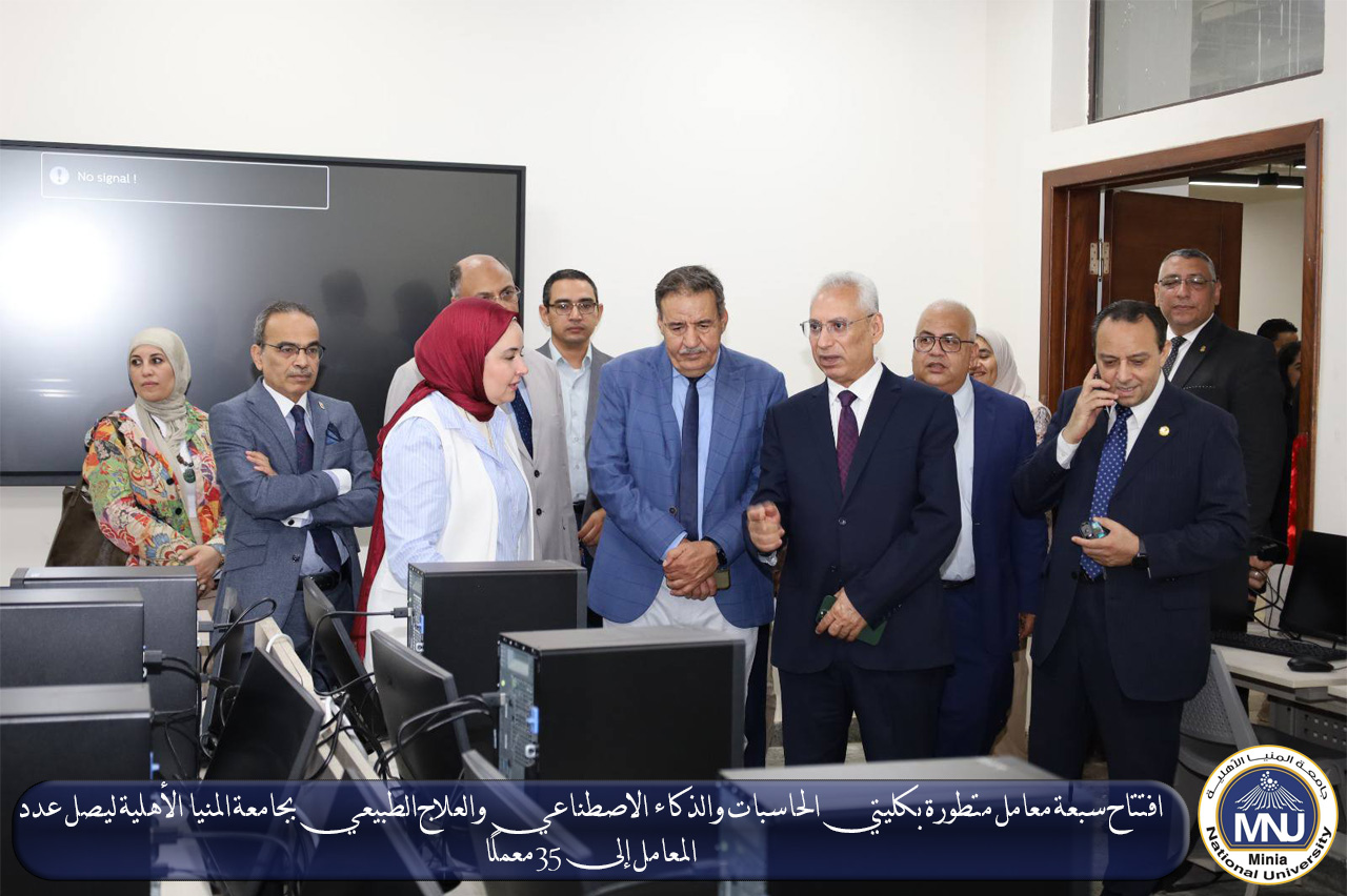 افتتاح سبعة معامل متطورة بكليتي الحاسبات والذكاء الاصطناعي والعلاج الطبيعي بجامعة المنيا الأهلية ليصل عدد المعامل إلى 35 معملًا