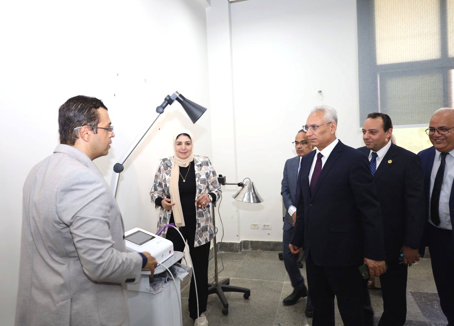وفي السياق ذاته، افتتح رئيس الجامعة المعمل الرئيسي للعلاج الطبيعي بكلية العلاج الطبيعي، والذي جُهز بأحدث الأجهزة الطبية العالمية، بما يتيح للطلاب فرصًا متقدمة للتطبيق العملي في مجالات التأهيل والعلاج الطبيعي. ويضم المعمل أجهزة علاجية متطورة تشمل: الموجات فوق الصوتية، وأجهزة العلاج متعدد التيارات الكهربائية لعلاج العضلات والأعصاب والإصابات المفصلية وتحسين الدورة الدموية، إلى جانب أجهزة العلاج الشمعية، والكمدات الدافئة، وأجهزة الأشعة تحت الحمراء العلاجية.
