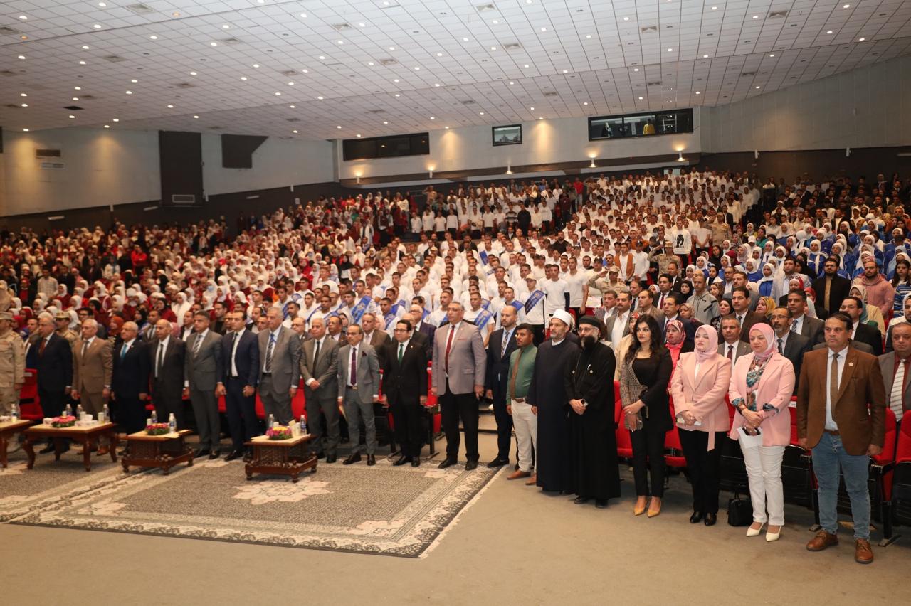 وأعرب الدكتور عصام الدين صادق فرحات، رئيس جامعة المنيا، في كلمته، عن سعادته واعتزاز الجامعة باستضافة هذا الحدث الوطني الكبير، مثمنًا الدورَ المهمَّ الذي تقوم به قواتُ الدفاع الشعبي والعسكري في نشر الثقافة والوعي، ومواجهة الشائعات، وتقديم نماذج مضيئة للتضحية والفداء، وكذلك دورها المحوري في رفع الوعي لدى طلاب الجامعات وإلقاء الضوء على التحديات الراهنة التي يواجهها الوطن.