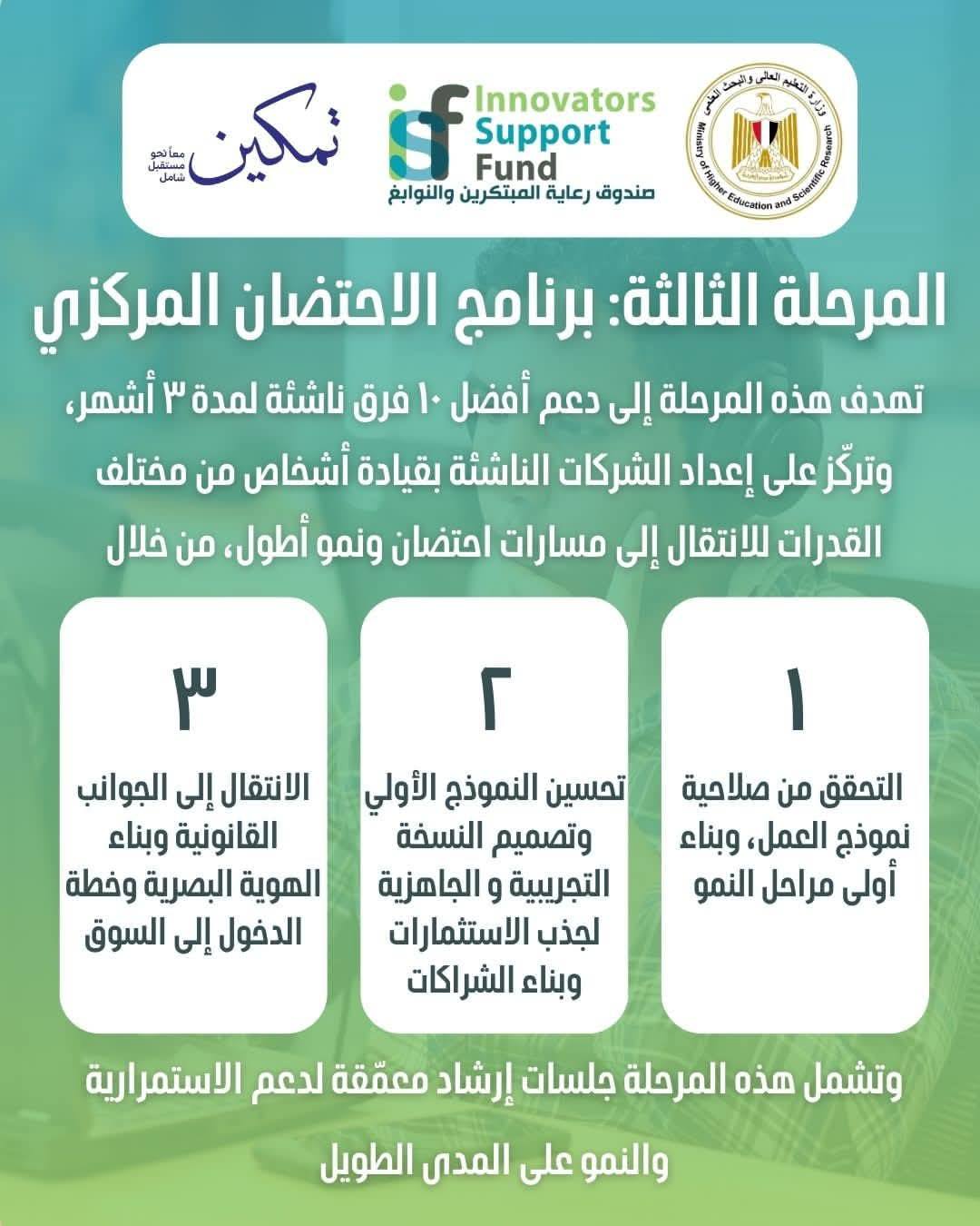 تم إطلاق برنامج (ابدع… انطلق) لتمكين الطلاب ذوي الإعاقة من تحويل أفكارهم إلى مشروعات ناجحة ومستدامة، من خلال تدريب عملي وإرشاد متخصص ودعم تقني وتجاري وقانوني، بالشراكة بين وزارة التعليم العالي وصندوق رعاية المبتكرين والنوابغ ووحدة تمكين، وبالتنفيذ من شركة ALX المتخصصة في الابتكار وريادة الأعمال على مستوى إفريقيا، ويستهدف البرنامج 150 رائدًا ورائدة أعمال.
