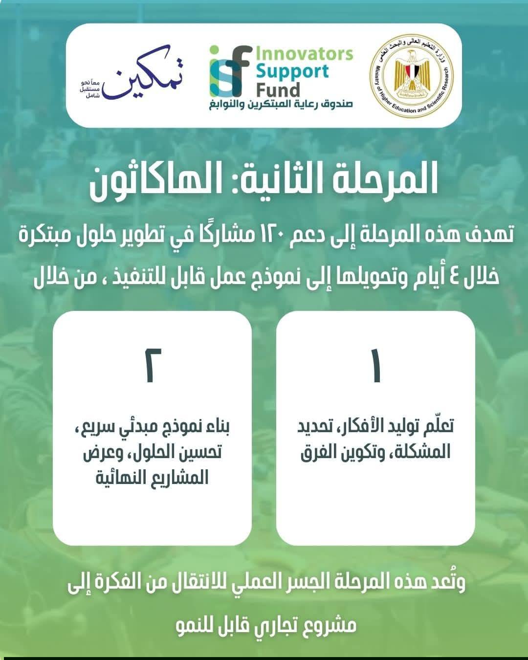 تنفيذًا لتوجيهات الدكتور أيمن عاشور وزير التعليم العالي والبحث العلمي بأهمية العمل على دعم وتمكين ذوي الإعاقة في التعليم والبحث العلمي والابتكار، ضمن الإستراتيجية الوطنية لتوفير بيئة حاضنة للابتكار وتحويل أفكارهم المبتكرة إلى مشروعات عملية تخدم المجتمع وتعزز الاقتصاد الوطني.