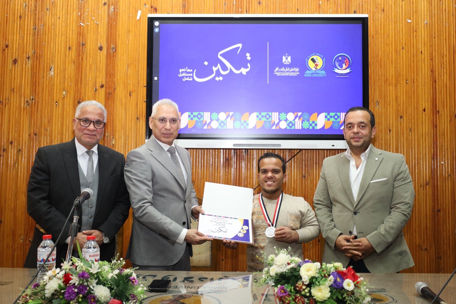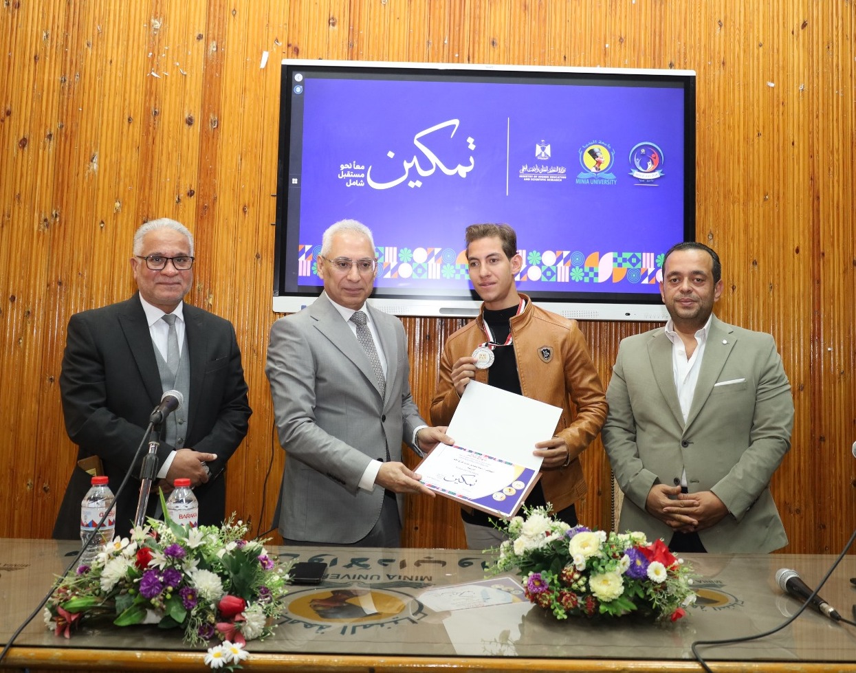في إطار التزام جامعة المنيا بدعم وتمكين الطلاب من ذوي الإعاقة، وتعزيز مبدأ تكافؤ الفرص والدمج الشامل داخل الحرم الجامعي، كرَّم الدكتور عصام الدين صادق فرحات، رئيس جامعة المنيا، الطلاب المتميّزين من ذوي الإعاقة المشاركين في فعاليات المبادرة الرئاسية «تمكين» التي أطلقتها وزارة التعليم العالي والبحث العلمي، والحاصلين على ميداليات خلال أكبر ملتقى رياضي جامعي للطلاب ذوي الإعاقة بالإسكندرية، إلى جانب تكريم القائمين على تنفيذ المشروع.