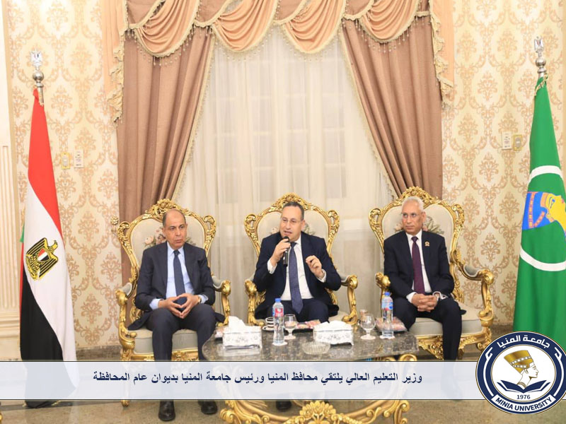 وزير التعليم العالي يلتقي محافظ المنيا ورئيس جامعة المنيا بديوان عام المحافظة
