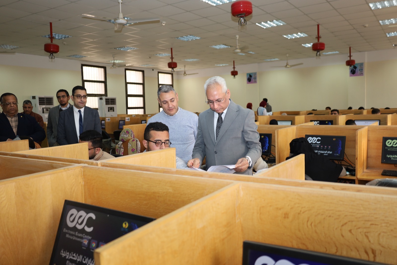 رئيس جامعة المنيا يتفقد سير الاختبارات الإلكترونية ببرنامج الصيدلة الإكلينيكية بكلية الصيدلة بجامعة المنيا الأهلية